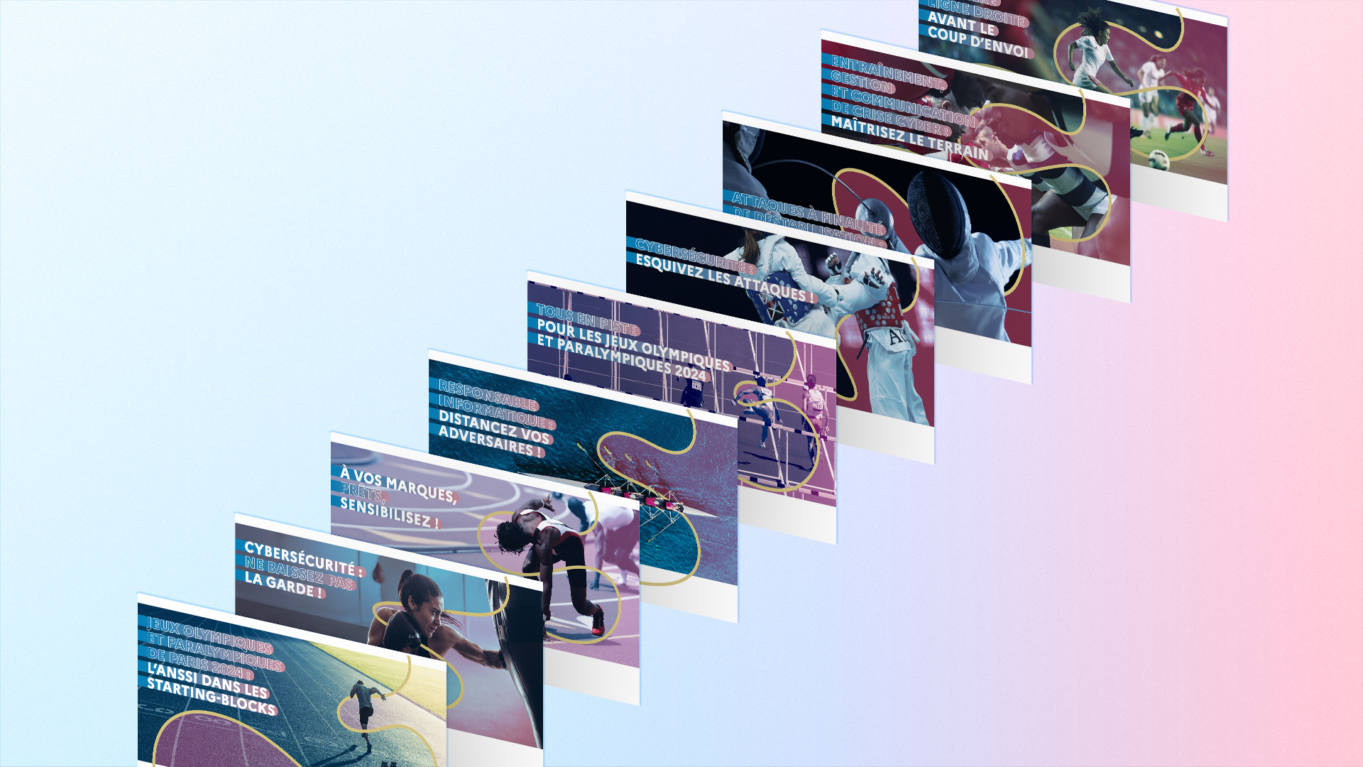 Dans le cadre des Jeux Olympiques et Paralympiques de Paris 2024, nous avons accompagné l’ANSSI (Agence nationale de la sécurité des systèmes d’information) dans la réalisation graphique d’une campagne de sensibilisation destinée à aider différentes entités (étatiques, territoires accueillant les JOP…) à se prémunir contre les attaques cyber pendant cette période.