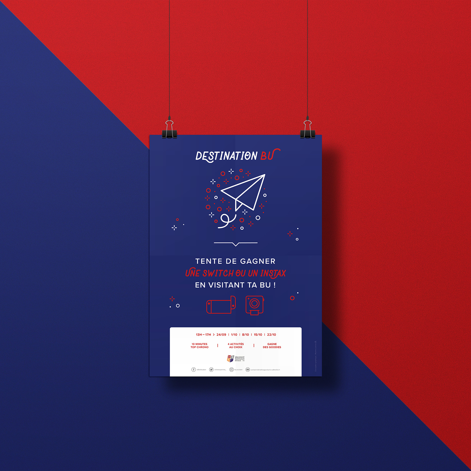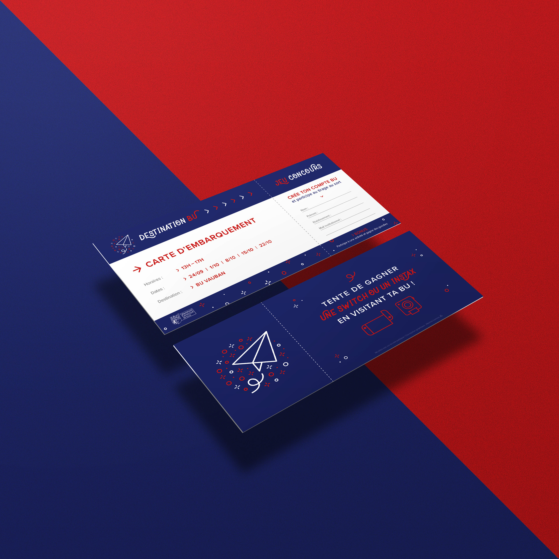 Nous vous présentons la réalisation de l’identité visuelle et des supports de communication de la campagne « Destination BU » organisée par la Bibliothéque Universitaire Vauban à Lille.